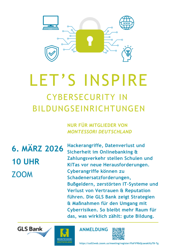 Wir laden unsere Mitglieder herzlich zu unserer inspirierenden Online-Veranstaltung „Cybersecurity in Bildungseinrichtungen“ in Zusammenarbeit mit der GLS Bank ein.